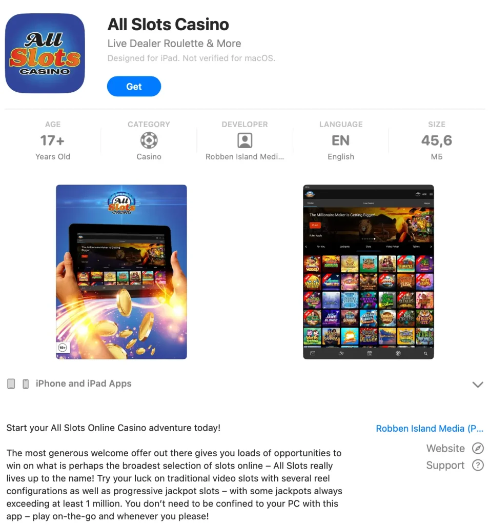 When you download app and install it on your device, you can immediately begin to enjoy all the offerings without delay. Similarly to our desktop version, you can do the same thing using the All Slots Casino mobile. There is no APK file to download from the Google Play Store for your Android devices or an IPA file from the App Store for iOS users. Also, you can’t find it on any third-party websites, as we do not offer any.